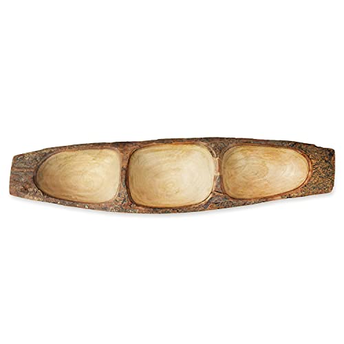 kroger RoRo Wooden Boat Sauce and Snack Tray with Bark Edges, Divided